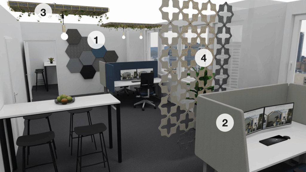 Efterklangstid är tiden det tar för ett ljud att bli ohörbart. Lång efterklangstid kan vara störande och göra det svårt att uppfatta talljud och behålla koncentrationen vilket orsakar stress. På Akustikmiljö arbetar vi ofta med lokaler såsom kontor, skolor, restauranger, där kort efterklang på cirka 0,5 sekunder är önskvärd. Här är sju enkla tips för hur ett kontor kan bli mer trivsamt att arbeta i.