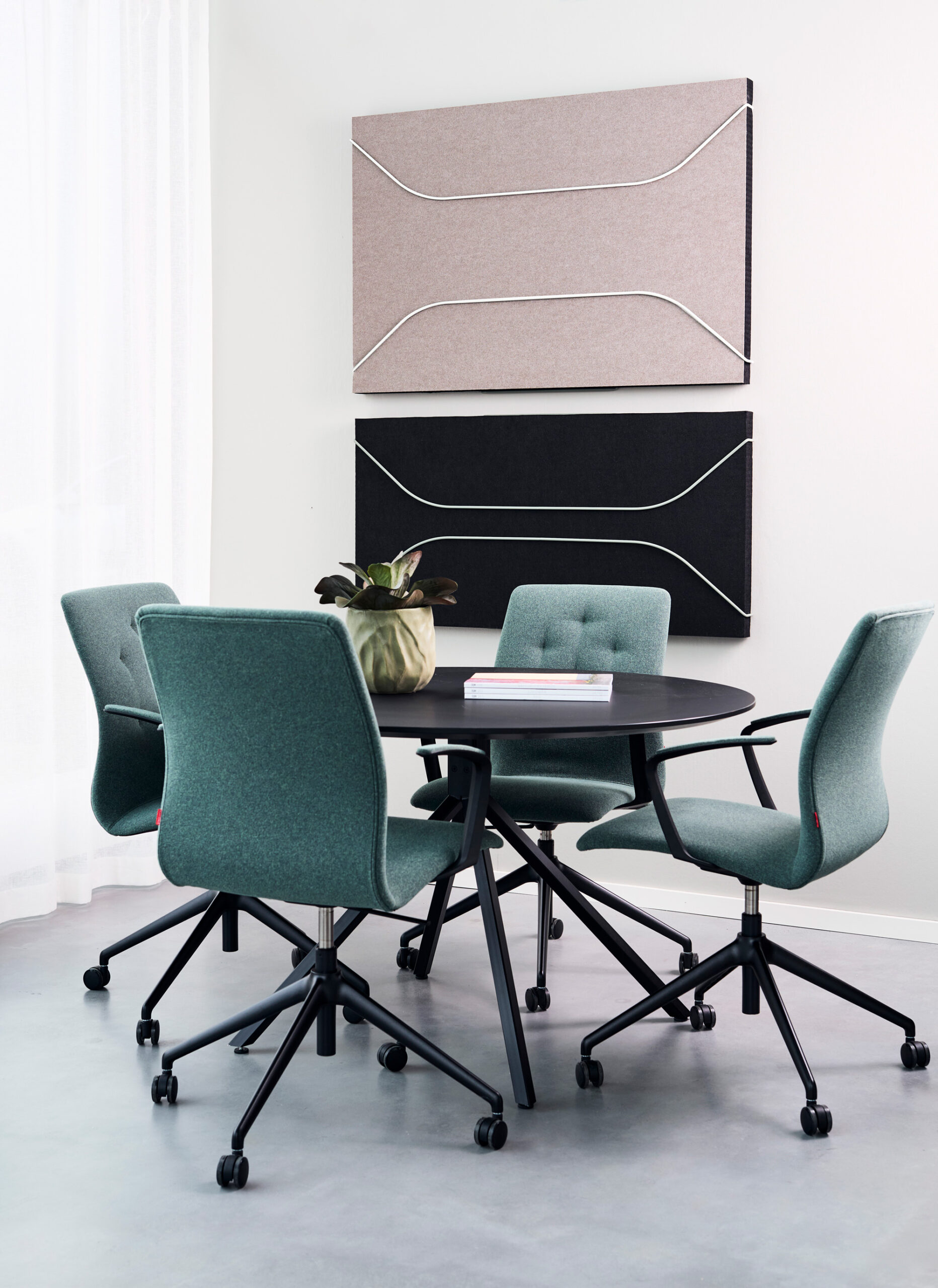 Trådbygel till LÄTT är metallbygeln som skapar en diskret och stilren upphängning för ljudabsorbenter där fokus hamnar på att framhäva materialet för att uppnå en maximal ljudabsorption.